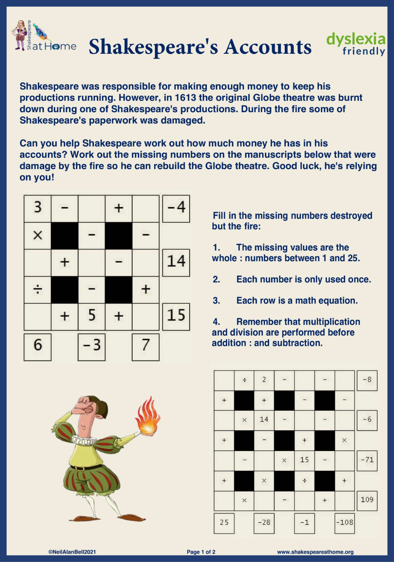 Fire as destroyed the Globe Theatre! Can you help The Lord Chamberlain's Men?