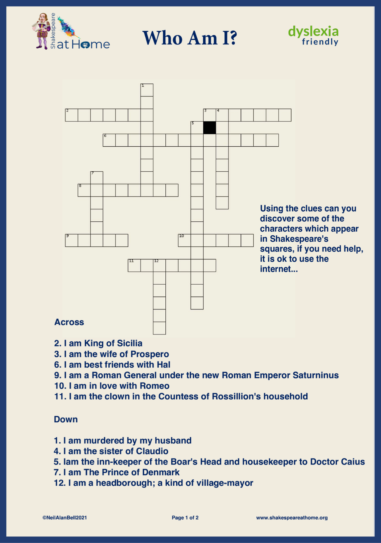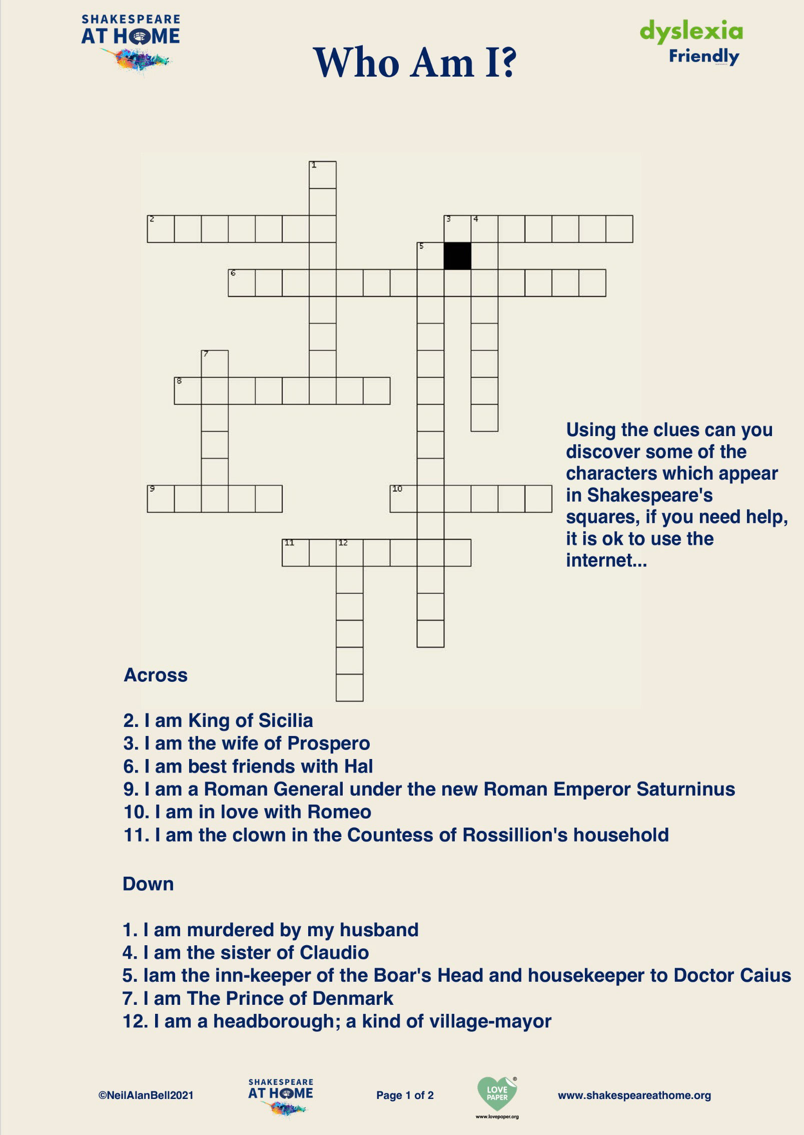 Can you workout and discover the characters who appear in some of Shakespeare's work?
